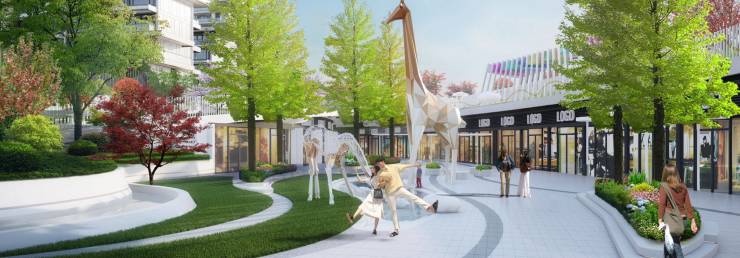 “云”意象主题公园演绎,打造云台漫步、踏云寻鹿、云朵森林三重乐园系统,链接城市云廊慢跑道,围合成公园、商业、住宅三位一体的生活环线。