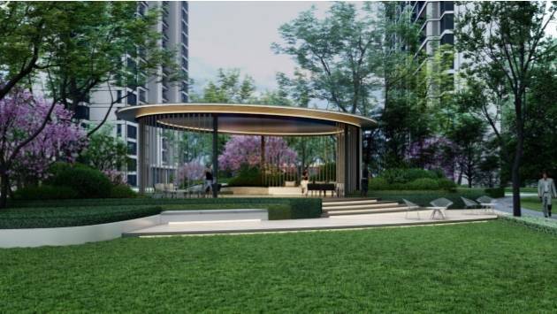 悦耳的流水瀑,结合场地高差,打造溪林艺术景观。跌水飞溅,绿树成荫,仿若置身于森林深处,让归家成为一种享受、一种放松、一场有关艺术的视听享受。