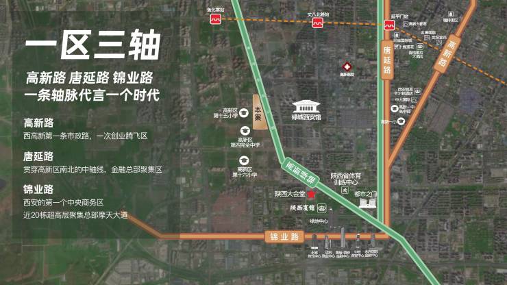 从高新路到唐延路,从锦业路到皂河生态公园,高新区的发展均以城市轴脉为趋势,随着产业南进,新一代高新绿轴(皂河生态公园)成为区域发展的重中之重,领衔高端生活快速回归。