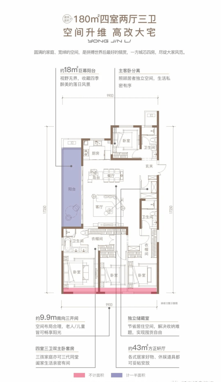 楼盘户型建面:135-180㎡