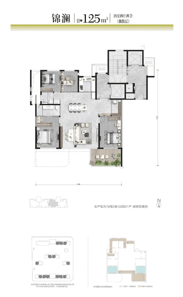 迎风岛屿:气势门头与迎宾水景融合,营造酒店式度假归家森澜水院:大面积水景空间结合会客廊亭,打造核心会客中庭