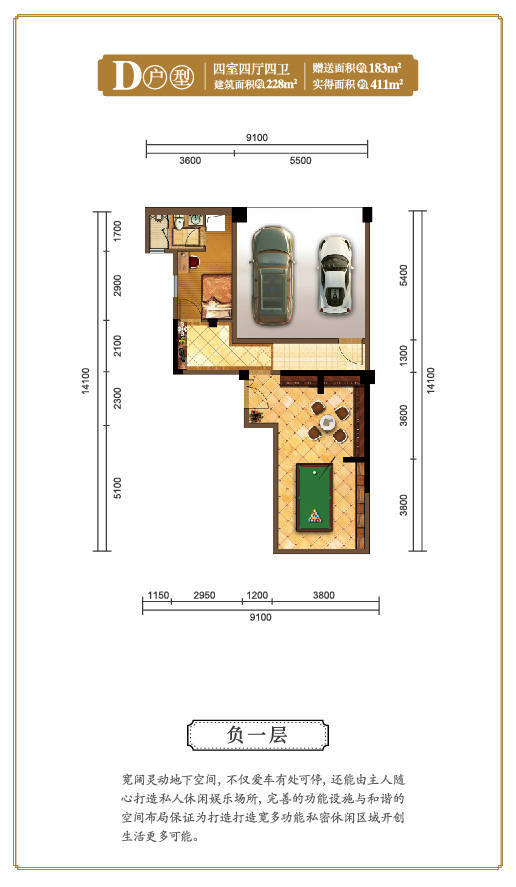 实得面积:约411平米