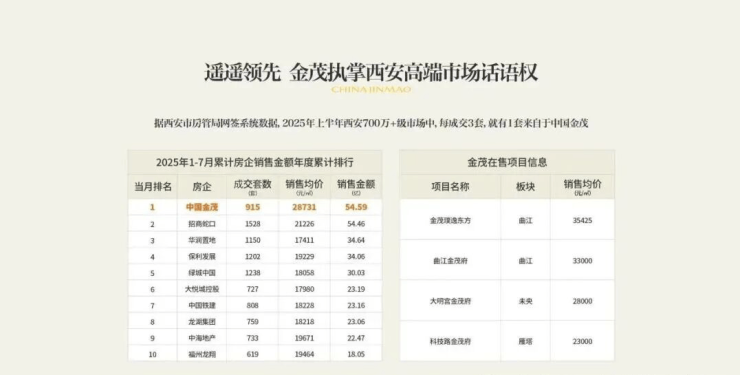 市场是检验产品的最佳"试金石”金茂在西安的项目,凭借卓越品质持续引领区域发展,堪称区域价的"点金者”自2018年起,茂在西安的所有产品均定位高端,充分彰显了其在高端市场的绝对引领地位。