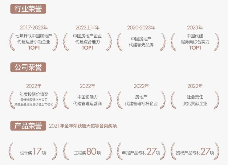 成立于2010年,是绿城中国(3900.HK)附属公司,也是绿城品牌和代建管理模式输出的主体,2017-2023年七年蝉联中国房地产代建运营引领企业TOP1,多元业态发展,构筑理想生活服务闭环。2020年7月,绿城管理在香港联交所主板上市(股票代码9979.HK),成为中国代建第一股。