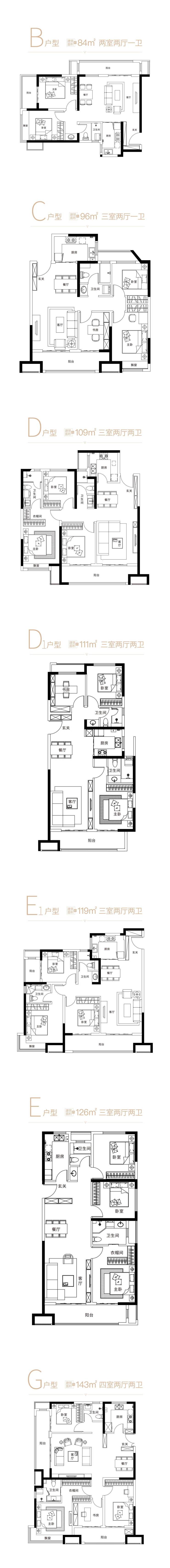 7种户型,建面:86-143㎡