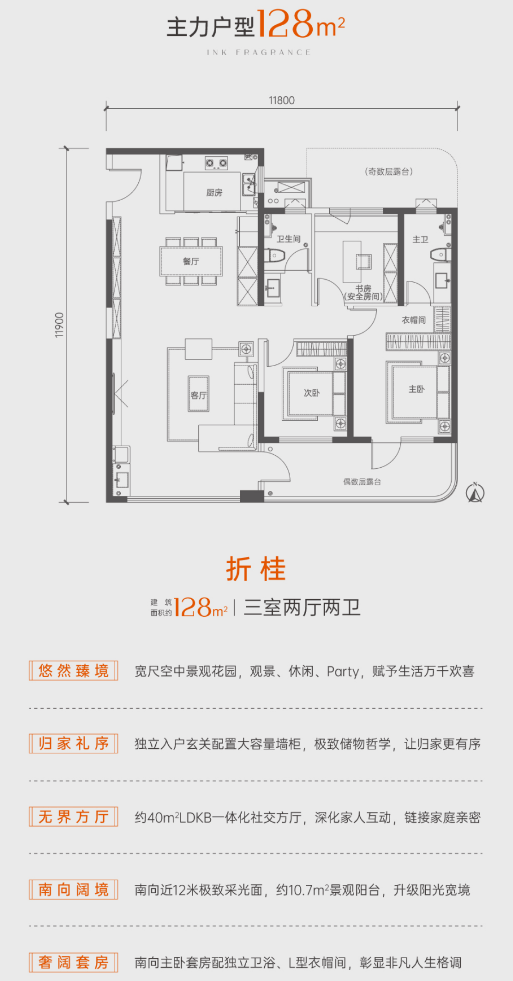 业态规划6幢21-33F高层住宅,1幢6F洋房户型面积建面约108㎡、128㎡户型