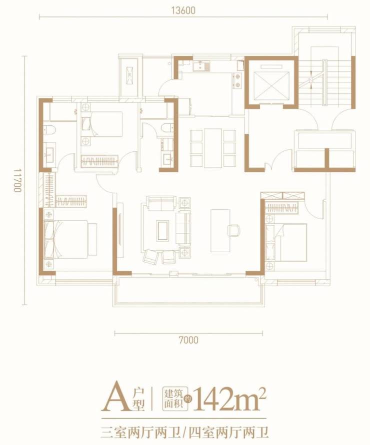 以“一心一轴四花园”园林规制,打造丰富的全龄段社区生活场,并于景观长廊之上,创新打造空中花园共享空间,带来更亲近自然的空中会客厅