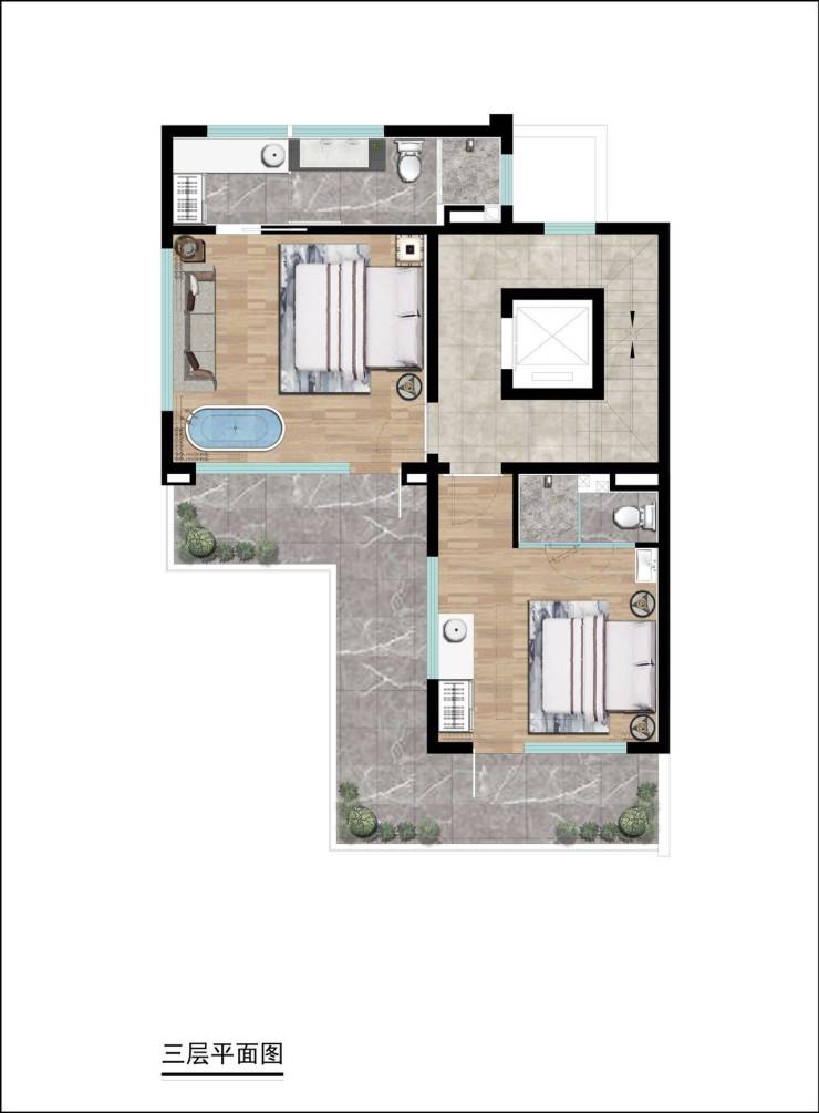 【7.3米挑空L 型转角露台】
