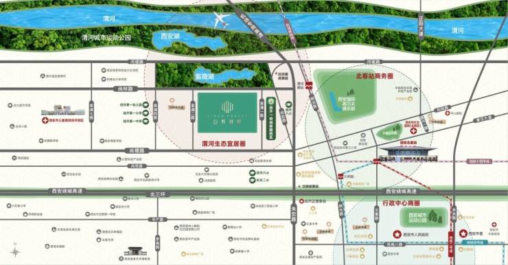 一河:渭河 两湖:西安湖,紫薇湖
