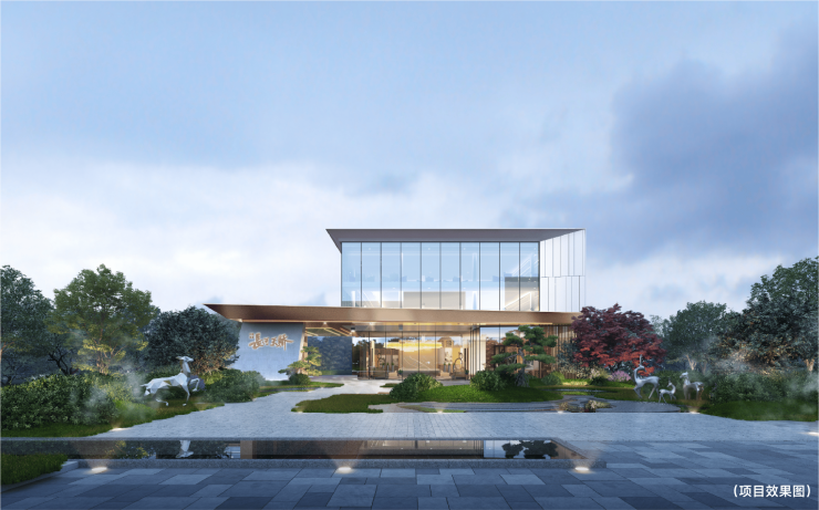 两轴五进一环多景,主入口清流浅溪、名贵造型松三株迎客,吉祥如意