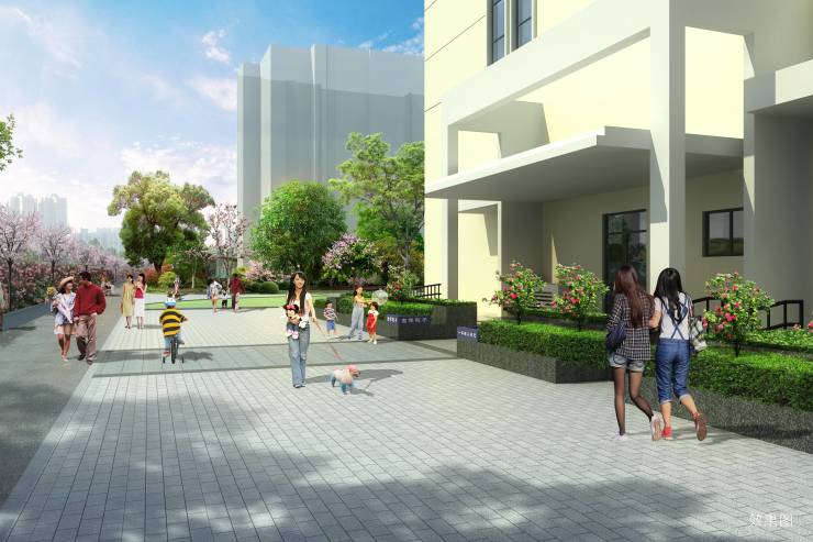 社区以35%高绿化率与22.6%低建筑密度的规划加持,打造高质量的舒适居住区。