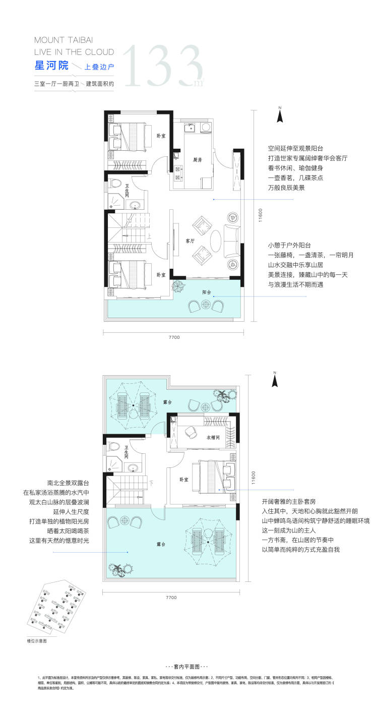 太白山·凤凰云庐传承凤凰精髓所在,融合自身优势,深研市场需求,匠心打造建面约65-133㎡叠拼洋房,以多元服务、投资托管、健康养生空间等,成就一座太白山下的美学养生私域,满足全龄段家庭的山居梦想。