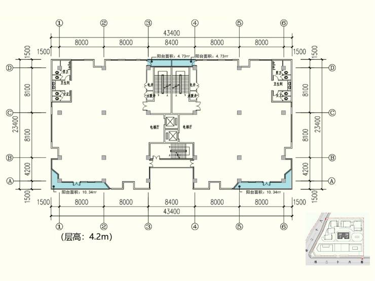 层高:首层、顶层5.1m,标准层4.2m