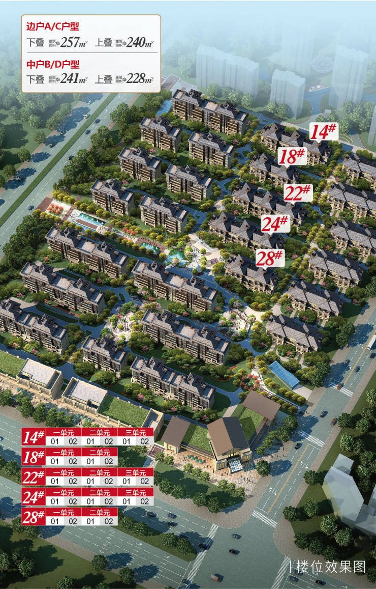 在低密土地资源收紧,一墅难求的市场大环境下,西港兰池郡·紫樾,藏品级叠拼实景现房,建筑面积约230-260㎡叠拼产品,上叠大尺度揽景露台,私藏每一幕风光,双厅空间,尽享大气雍容气场,下叠前庭后院,四季芳菲,上下叠均含地下室第三空间,予家人一个欢乐天地。