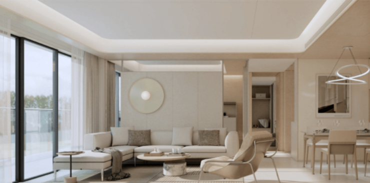 汲取玉璧、皮影、印玺等东方美学灵感,引入幸福林带绿意,同源全球度假酒店,以商办共享+社区私享多元复合,规划“一环一轴多节点”雅奢艺术园林,营造艺术森居场景体验,打造可居可赏、可游可玩的长者花园、青林茶话、活力球场、儿童乐园等乐活场域。