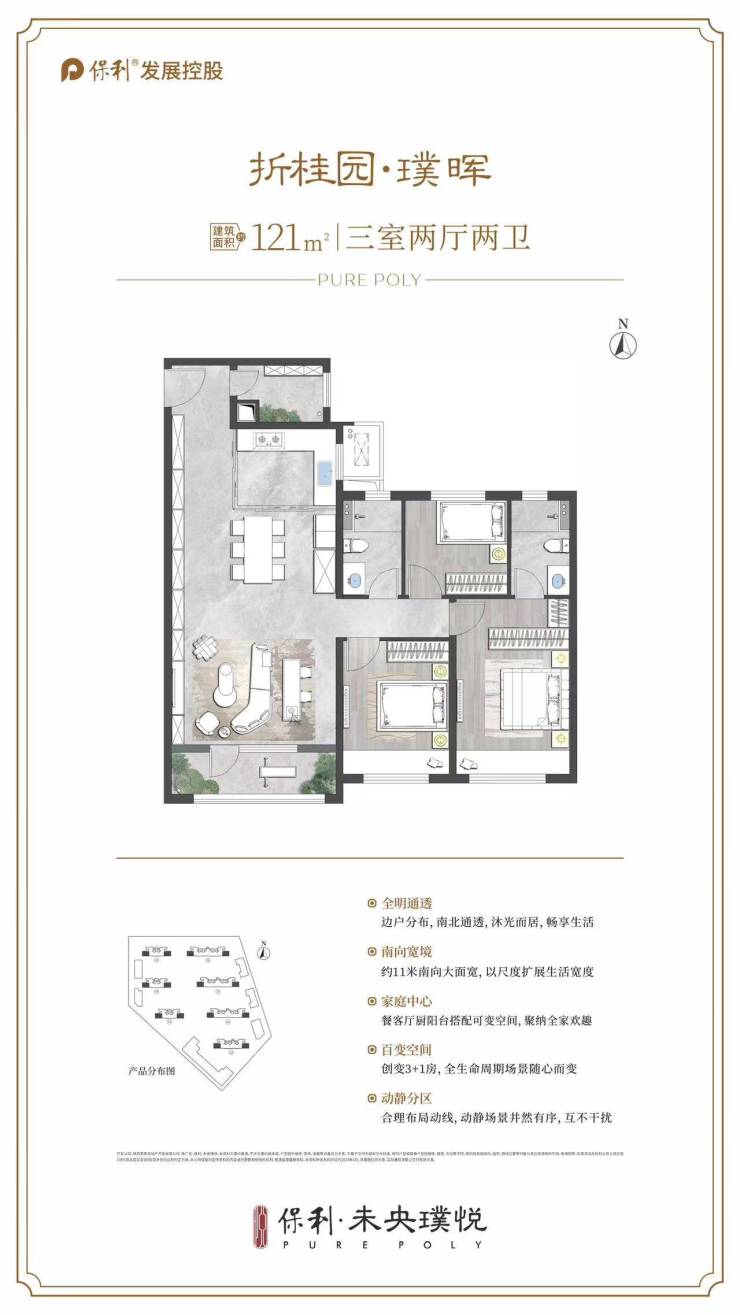 产品类型:保利在西安的首座“悦”字系产品,定位高端住宅,包含璞悦皓月园、璞悦鸣涧园、璞悦折桂园三个地块