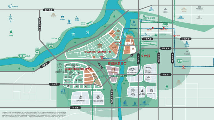 项目周边交通大学创新港校区,西安交通大学附属中小学(约2.8KM)、幼儿园,交大系教育平台环伺;