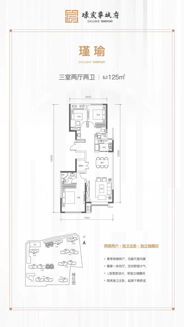 户型4.建筑面积125.02-130.31㎡三室两厅两卫户型122套;