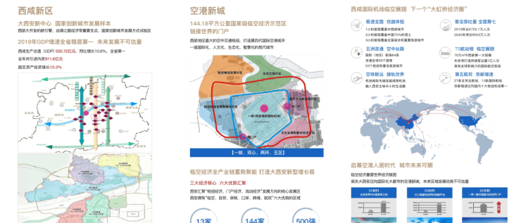 空港新城占地约144.18平方公里,西咸新区最重要的组团之一,和沣东、高新共同组成大西安科技创新引领轴。西安唯一汇聚“门户经济、枢纽经济、流动经济”三大经济发展方向的核心发展区。西安唯一拥有“临空、自贸、保税、口岸、跨境、航权”六大优势的区域。全国唯一同时拥有“国家级新区+中国(陕西)自由贸易试验区+临空经济示范区”三个国家级名片的地区。