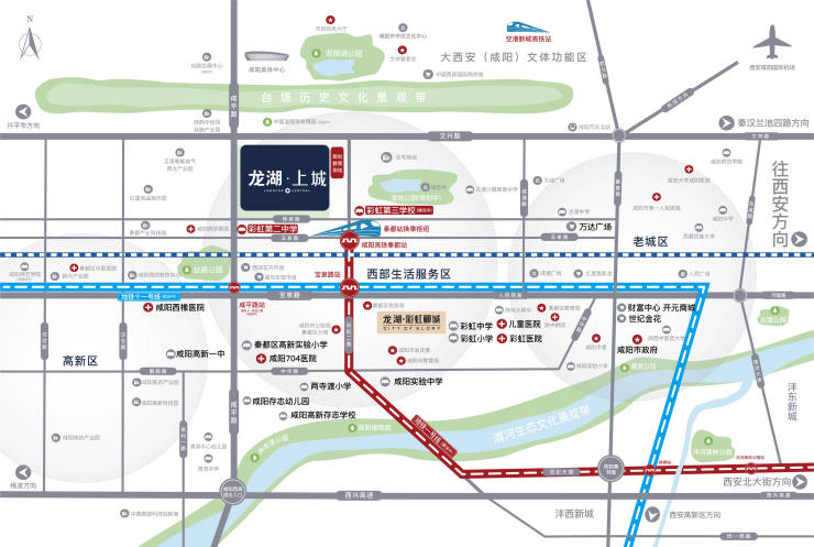 项目配套:秦都高铁站+地铁11号线(规划中)+地铁1号线三期(建设中),紧邻台塬历史景观文化带、丝路公园、环城公园(规划中),万达广场(咸阳丽彩店)