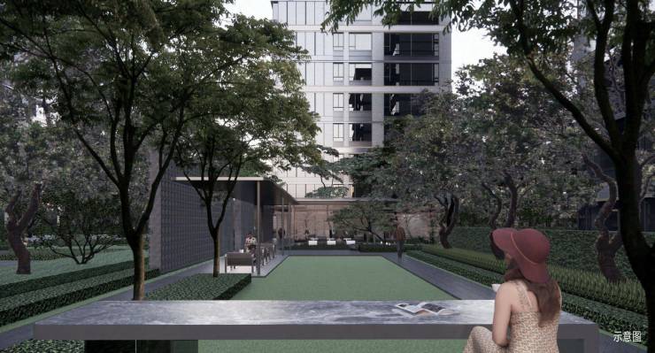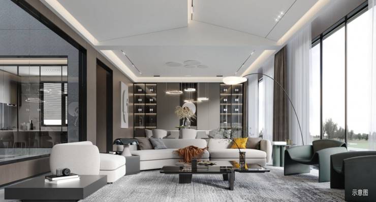 中海·开元壹号|紫宸园林架空层设置专属的会客休闲与阅读空间,室内室外视线相互渗透,空间延伸交织,联动形成优雅会客厅。