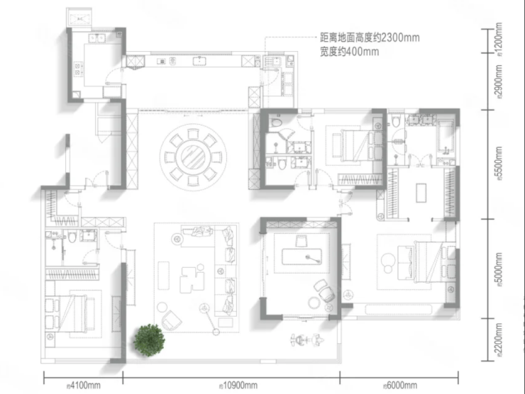 4室2厅3卫1厨, 建面290平米