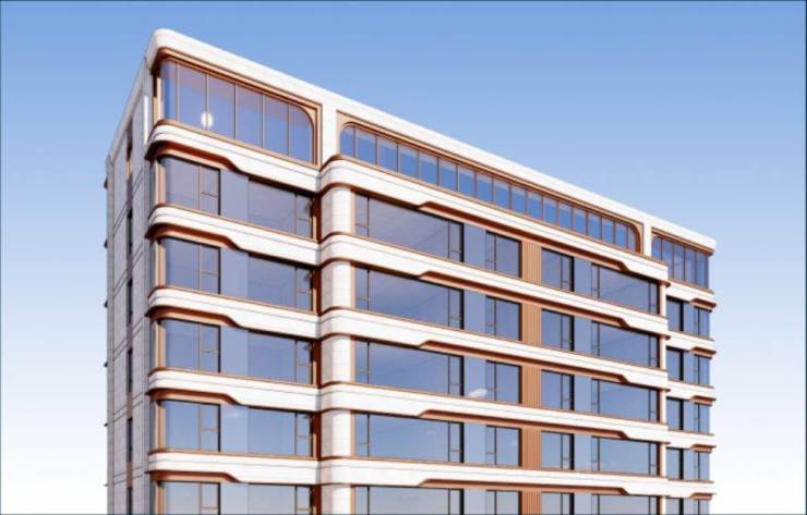 中旅名门府建筑造型取法山水自然,以自然起伏线条为元素,筑造灵动曲线与极简美学艺术。建筑外立面采用类公建化,沉香米色石材和真石漆搭配香槟金色金属漆和金属板搭配玻三玻两腔LOW-E中空玻璃,打造灵动璀璨的光幕立面。