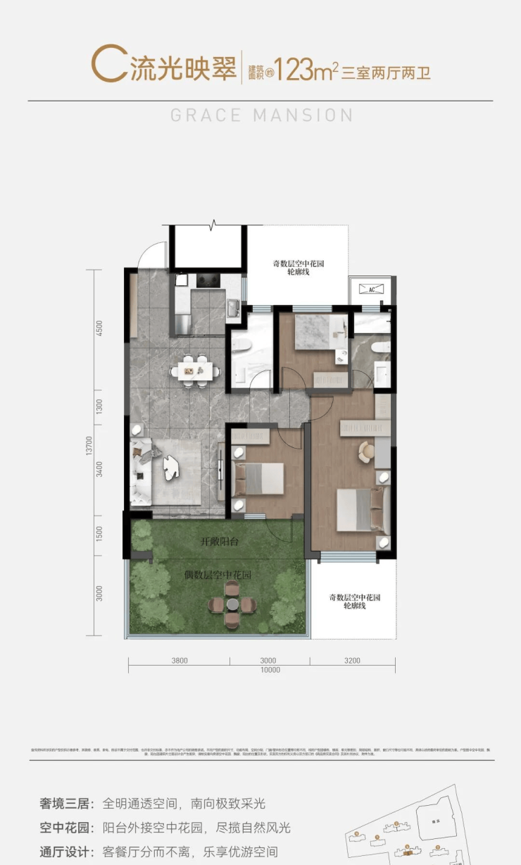 实力巨著建筑面积约115-176㎡奢适空中庭院。