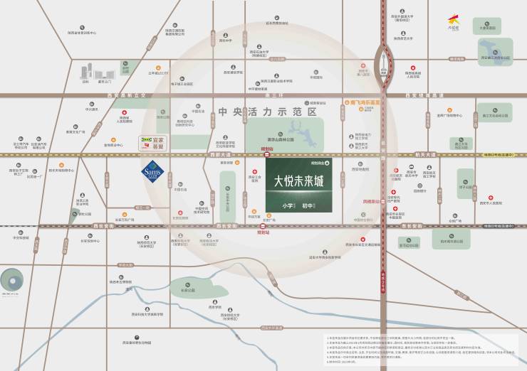 大悦未来城择址主城西部大道核心板块,以千亩都会之城,激活链接曲江文旅、高新创创、长安人文、航天产能板块,打破版图界限,汇聚多板块活力,构筑城市新中心坐标。