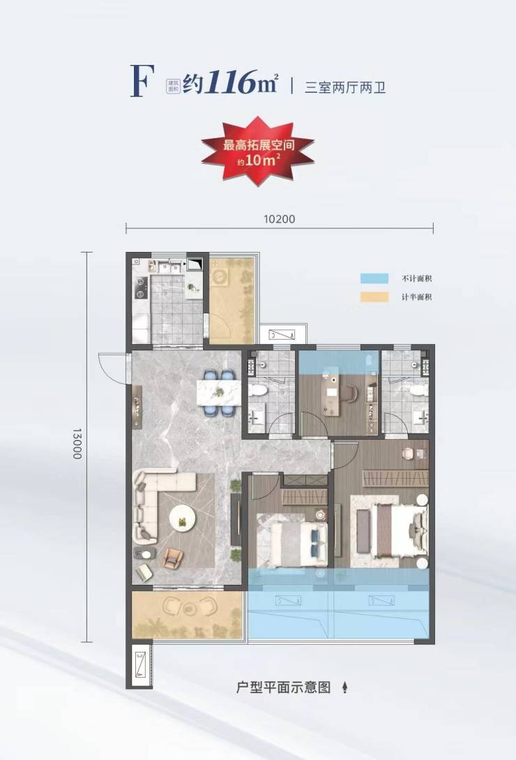 116㎡赠送约10㎡