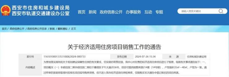 7月26日西安市住房和城乡建设局发布