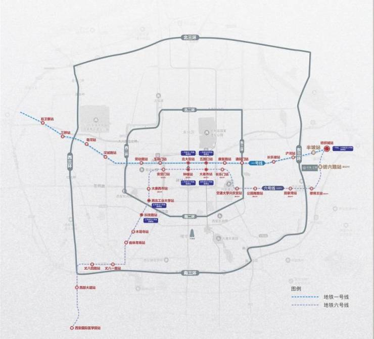 【多维交通】1号、6号双地铁,立体交通速抵全城。距1号线半坡站约1.4km,距6号线纺六路站(在建)仅约700m,近邻绕城高速的纺织城站和香王站两个入口,通达全城畅行无阻。