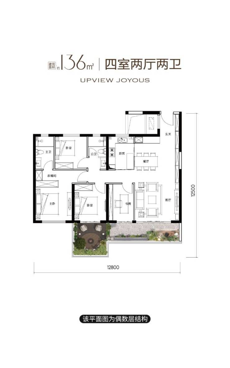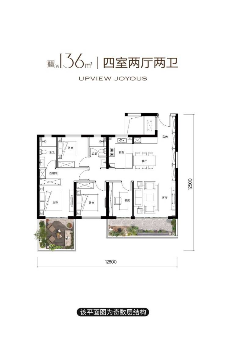 2.136㎡四室两厅两卫(奇数层/偶数层)