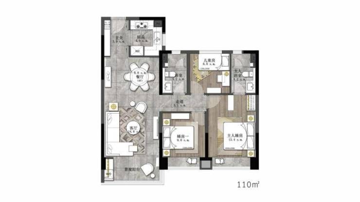 在户型设计上,我们更是对居住需求用心考量,雕琢生活之美,万莱逸辰为纯板住宅,户型南北两进式布局,南北进深小,布局通透,社区内最大梯户比仅为1T2,更有60%楼栋为1T1,拥有独立电梯厅,为业主提供更多实用空间的同时增加居住舒适度,在南向建筑规划无墙体设计,增加光线通透性,给予业主更好的日照采光及观景视野,项目产品面积区间为约110.128.135.均为三室户型。