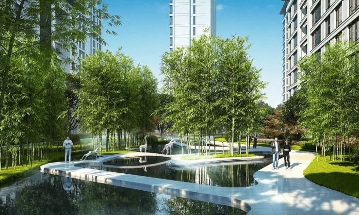 悦达电建玖玺台园林秉承“城市立体森林”概念,以“光之语、谷之间、风之隙、水之影”四大自然元素,涵养儒雅、宁静、自然、从容的人文风雅,呈现“一环四廊六境”美学园林艺境,营造“全时段、全天候、全龄段、全体验”的归心社区。