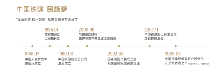 【中国铁建】中国铁建股份有限公司,由中国人民解放军铁道兵发展而来,是全国最具实力、规模的特大型综合建设集团之一。