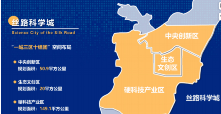 丝路科学城将由中央创新区、生态文创区和硬科技产业区三个片区组 成 ,聚集十个各具特色的产业组团 ,形成“一城三区十组团”的空间结构。