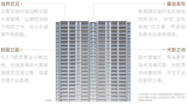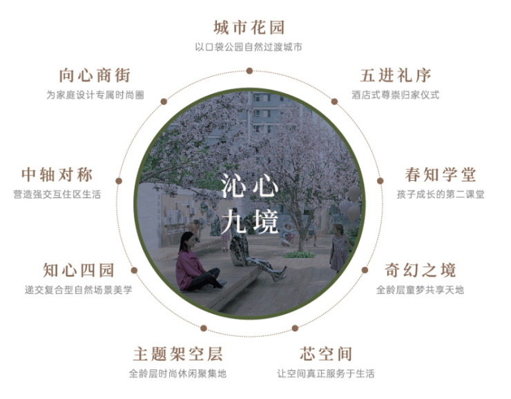 秉持“以人为本”的设计理念,将自然、艺术、生活有机融合,以“沁心九境”营造人与自然互动的空间氛围,打造心与心结合家庭交互式成长住区。