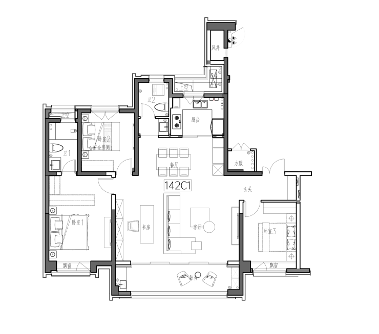 B户型|建筑面积约142㎡ 四室两卫