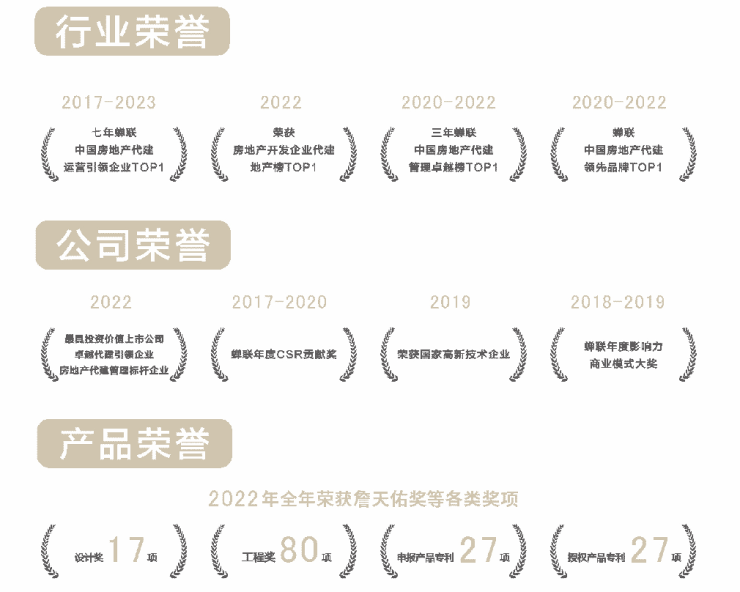 2022年,绿城中国实现在中指院、克而瑞、亿翰智库三大机构的产品力测评大满贯,荣获“2022中国房企超级产品力TOP 1”,具有超强的产品创新力及美学造诣。