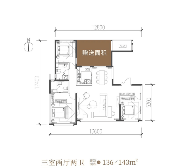 建筑面积约143㎡ 三室两厅两卫