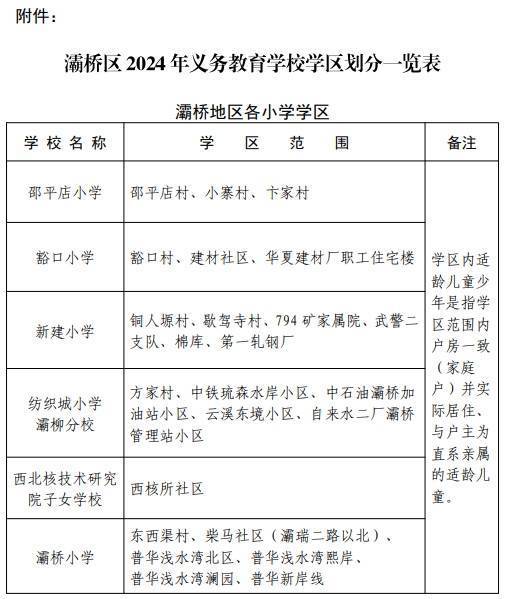 西安市(灞桥区)2024年义务教育学校学区划分方案