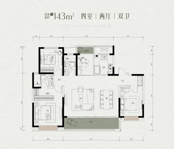 户型面积:建面约143-220㎡纯板式绿奢大宅