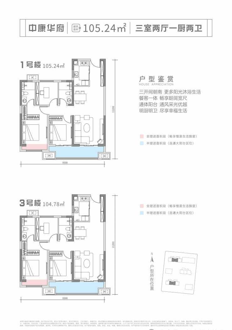 约105㎡(三室两厅两卫)