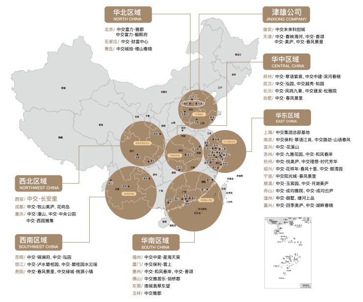 中交地产股份有限公司(深交所,000736)成立于1993年,旗下拥有110余家全资、控股企业,业务布局全国30余城市和地区,是中交集团实现“五商中交”战略之“特色房地产商”的主要平台之一,也是“中交”品牌在地产业务板块的首要承接者。