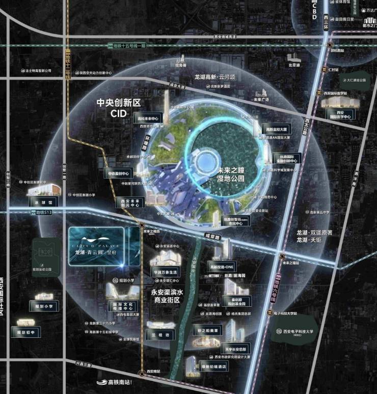 未来之瞳 西安的世界级地标——CID核心未来之瞳中央商务区,规划4栋超400米及20余栋超百米摩天大楼、500亩湿地公园、永安渠商旅文化街区、丝路大剧院等最高量级的城市资源和生活配套,发展势能最大;