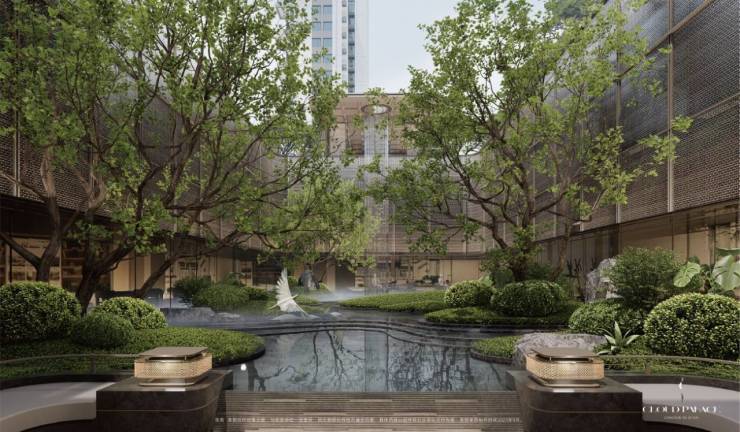 (5) 东方底蕴(园林造诣):对标辋川别业诗意范本,融合内敛与雅奢气质,引千年长安色、纹、料、饰入园,承袭青云礼仪之序;